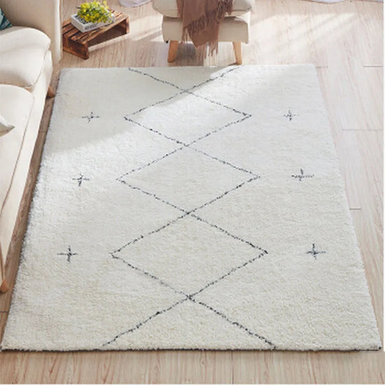 Découvrez le Tapis shaggy blanc Pola , une pièce maîtresse pour votre intérieur. Orné d'un motif géométrique de losanges noirs sur fond blanc, ce tapis est l'incarnation du style contemporain. Son épaisseur et sa texture moelleuse garantissent une sensation de confort incomparable, tout en créant une atmosphère accueillante et luxueuse. Grâce à sa palette de couleurs neutres, il s'intègre harmonieusement dans divers décors, ajoutant une touche moderne à votre salon ou chambre. Le Tapis shaggy blanc Pola est l'alliance parfaite entre fonctionnalité et esthétique, transformant votre espace avec élégance.