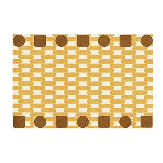 Transformez votre salon ou salle à manger avec ce tapis rétro géométrique en cachemire. Ses motifs de cercles et de rectangles dans des tons crème et jaune apportent une touche nostalgique et chaleureuse à votre espace. Inspiré par le style américain d'antan, il propose un charme intemporel tout en garantissant une texture somptueusement douce sous les pieds. Son design audacieux illumine n'importe quelle pièce, faisant de ce tapis un élément central de votre décoration intérieure. Ce tapis offre non seulement du confort, mais également une élégance qui séduira vos invités.